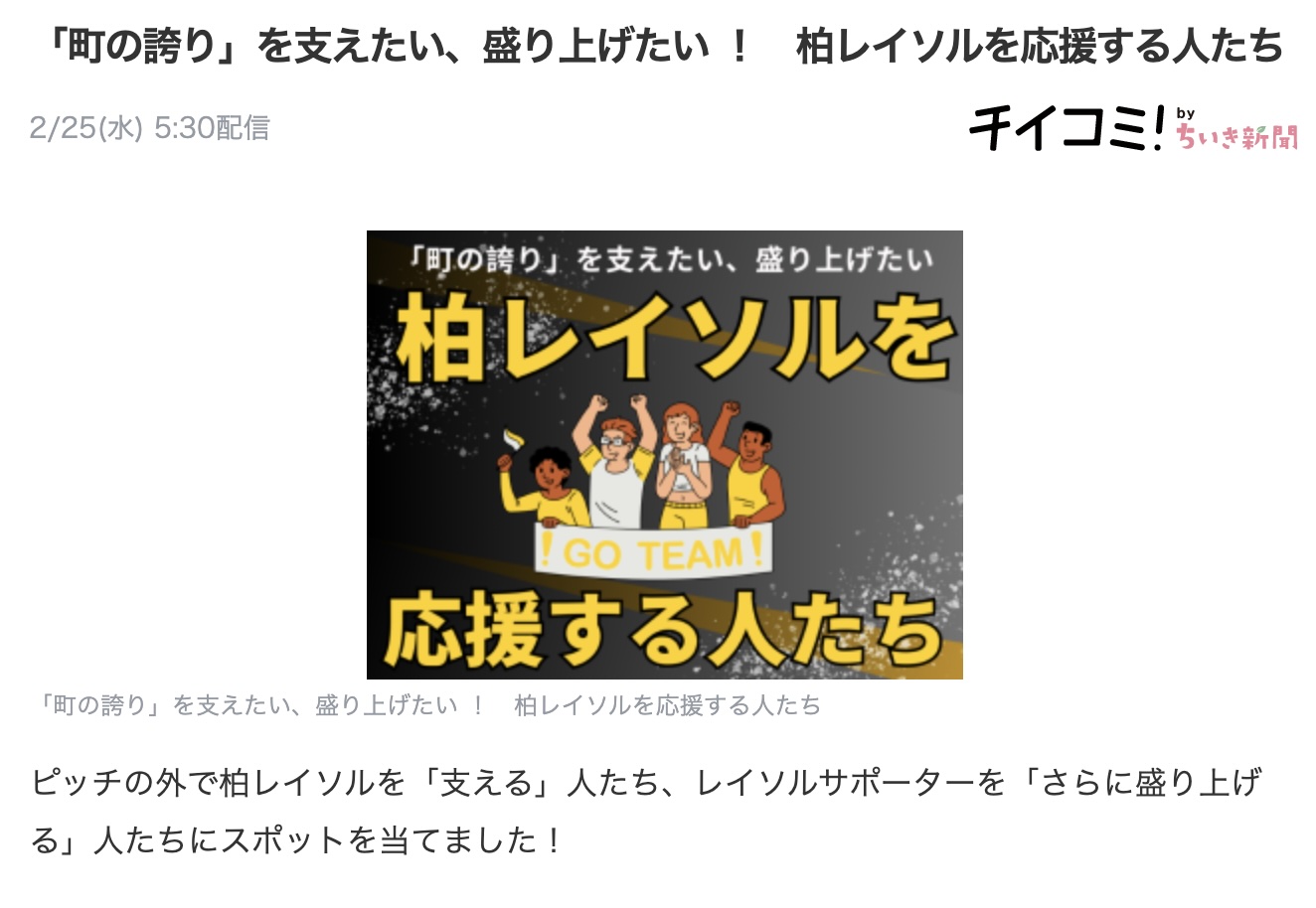 柏商工会議所青年部の会長コメントが、Yahoo! JAPANの記事に掲載されました!柏レイソルへの思いや、柏のまちを盛り上げていきたいという柏YEGの姿勢を取り上げていただいています。 ↓以下コメント抜粋↓ 2025年度 […]