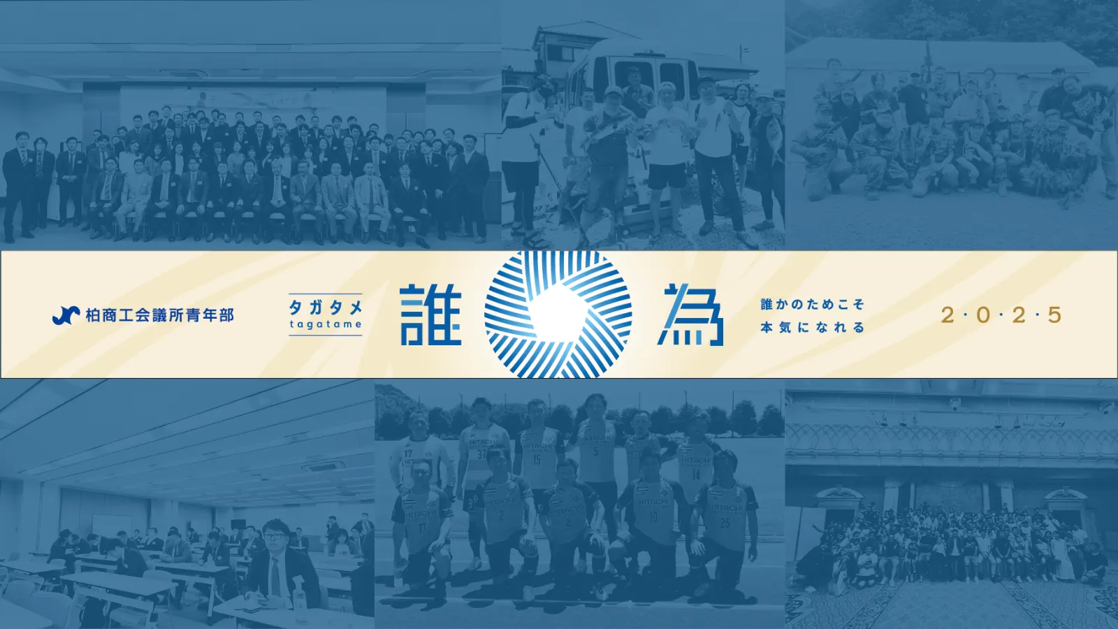 柏YEGの未来を考えたときに、誘致に成功した第47回関東ブロック大会を控え、その翌年には創立50周 年の節目の年を迎えます。そして、その節目に向かうために行動指針でもある中期ビジョンも45周年に策定さ れました。YEGは一年一年で役職や基本方針が変わる単年度制であります。しかしながら、綱領・指針などの 概念・理念や、行動方針としての中期ビジョンは継続的なものであります。言い換えると単年度という不連続と、 継続していかなければならない概念という連続があり、YEGは不連続の連続である組織です。このように不連 続の連続である組織の活動をおこなうには、メンバー全員が同じ方向を向く必要があります。そのうえで急激に 変化する昨今の状況を考えると、同じ方向を向くことに加え、年度ごとにおこなうべき目的にピントを合わせて いく、明確な目的意識の共有が必要です。そのために、令和7年度の1年間は「誰為~タガタメ~」というテー マを掲げて活動をおこないます。